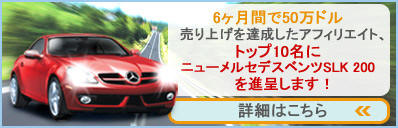 「アイ薬」アフィリエイターが売上目標を達成された場合のスペシャルプレゼント企画!! ”6ヶ月間で50万ドルの売り上げを達成したアフィリエイタートップ10名様に、ニューメルセデスベンツSLK 200を進呈致します!”